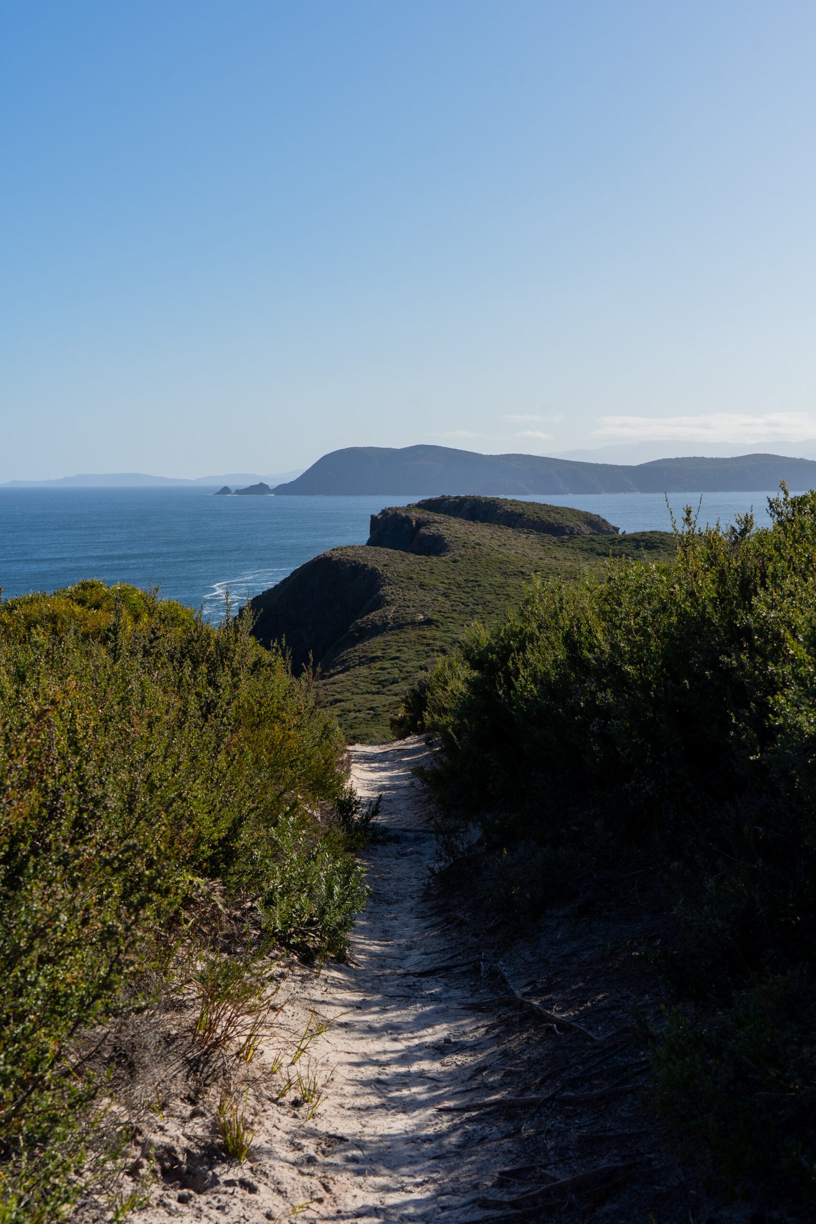 Cloudy Bay Circuit: 14 km Loop, 300 m Höhenunterschied, ca. 3,5 Stunden. Bring unbedingt deinen Badeanzug mit, und halte die Augen offen für Schlangen und Echidnas.