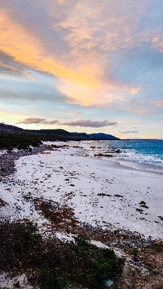Ich hab hier ein paar Tage ganz allein verbracht. Keine Menschenseele. Und vermutlich der schönste Strand auf Tasmanien. Blau leuchtende Wellen und weißer Sandstrand. Genug Bäume die Schatten bieten und wo man die Hängematte aufhängen kann, Toiletten und Picknicktische. Liebs. Dazu noch Kängurus. Ein Possum ist mir Nachts aufs Dach gesprungen, packt gut euer Essen ein 😉