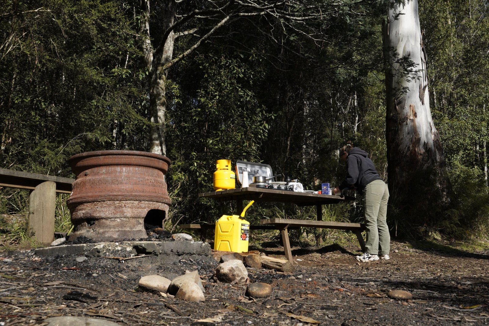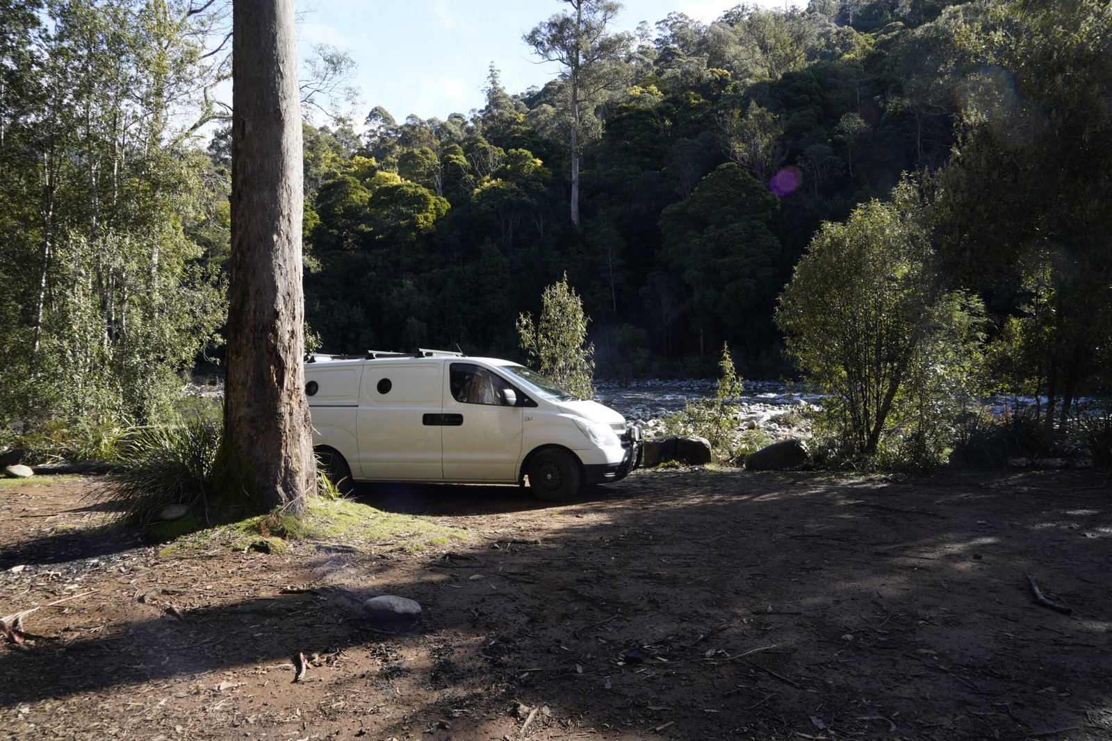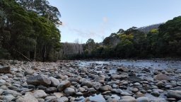 Ein absoluter Traum an Ruhe. Direkt am Fluss umgeben vom Wald. Kein Service, niemand stört. Dafür Feuerstellen, Picknicktische und Toiletten. Tasmanien kostenlos campen? Absoluter Traum!